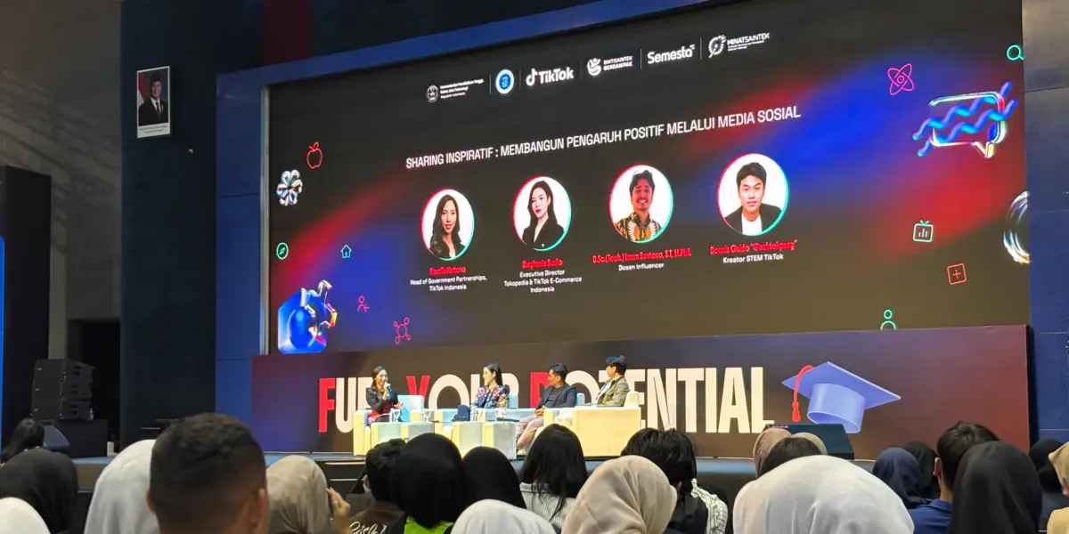 Sesi sambutan juga disampaikan oleh Stephanie Susilo, Executive Director Tokopedia dan TikTok E-Commerce Indonesia, yang menyoroti semakin besarnya ruang bagi konten edukatif di platform digital. Ia menjelaskan bahwa TikTok tidak hanya menjadi medium kreatif, tetapi juga berkembang sebagai ruang belajar yang inklusif dan mudah diakses.