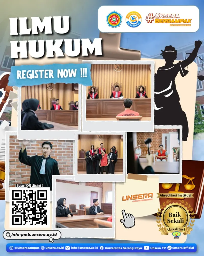 Bagi calon mahasiswa yang memiliki minat pada dunia hukum, keadilan, dan penegakan aturan, Program Studi Ilmu Hukum UNSERA menjadi pilihan tepat untuk mempersiapkan karier sebagai praktisi hukum, aparatur negara, konsultan hukum, maupun profesional di berbagai sektor.