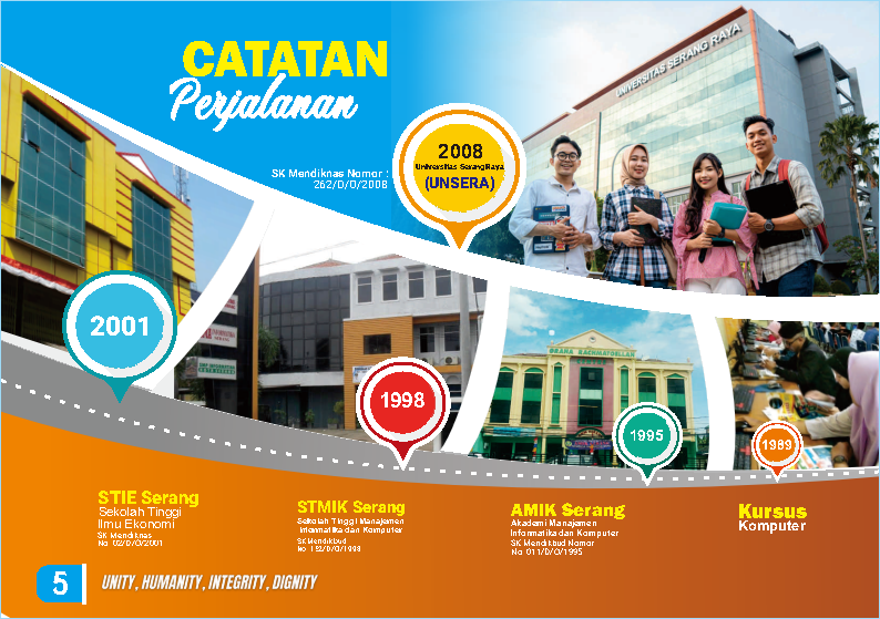 Eksistensi YPI Serang sebagai institusi pendidikan berupaya mengantarkan masyarakat berdialektika dengan kebutuhan pembangunan yang dinamis serta transformasi ke dalam era informasi dan teknologi mendorong segenap civitas YPI Serang untuk mewujudkan kembali perguruan tinggi Sekolah Tinggi Manajemen Informatika dan Komputer (STMIK) Serang pada tahun 1998 dengan SK Mendikbud No. 152/D/O/1998. Tidak hanya sampai di situ, upaya YPI Serang mendirikan perguruan tinggi tetap konsisten pada cita-cita awal pendirian YPI Serang yaitu di bidang pendidikan mendirikan universitas dan di bidang kesehatan mendirikan rumah sakit yang representative. Maka pada tahun 2001 lahirlah Sekolah Tinggi Ilmu Ekonomi (STIE) Serang dengan SK Mendiknas Nomor 02/D/O/2001 dengan rumpun disiplin ilmu ekonomi menyempurnakan program studi yang telah dikembangkan di STMIK Serang. Manifestasi yang telah dicapai oleh YPI Serang dalam kurun waktu dasawarsa pertama (tahun 1989 s.d 2000) telah membina 3 (tiga) buah perguruan tinggi AMIK Serang, STMIK Serang dan STIE Serang serta 3 (tiga) buah lembaga pendidikan dasar dan menengah yaitu SMP Informatika, SMA Informatika dan SMK Informatika. Memasuki pertengahan dasawarsa kedua (tahun 2000 s.d 2010) YPI Serang sebagai penyelenggara pendidikan semakin matang baik secara pengalaman, organisasi dan manajemen serta mempertimbangkan berbagai aspek yang berkaitan dengan kepercayaan dan keberpihakan masyarakat dan stake holder terhadap lembaga pendidikan yang dipersembahkan oleh YPI Serang, semakin meyakinkan segenap pengurus YPI Serang untuk mewujudkan Universitas Serang Raya (UNSERA) dengan menggabungkan STMIK Serang dan STIE Serang sesuai cita-cita awal pendiri yayasan pendidikan Informatika (YPI) Serang. Keberadaan UNSERA diharapkan dapat berpartisipasi dan berperan serta secara aktif dalam rangka menghubungkan keadaan sekarang dan masa depan, serta sekaligus dapat merupakan penghubung antara dunia ilmu pengetahuan, teknologi dan seni dengan kebutuhan nyata masyarakat sekarang dan yang akan datang.